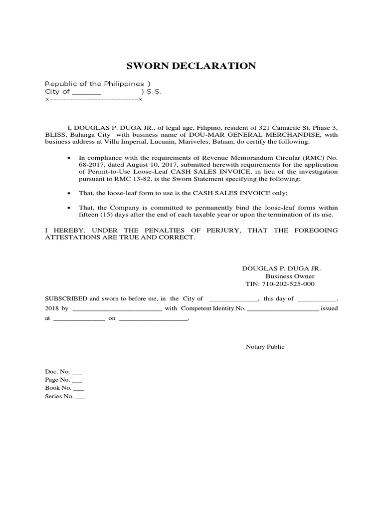 Sample formats to be used 3. A sworn statement to utilize Loose-leaf Books of Accounts in your business stating the. Follow this guide so you can say goodbye.